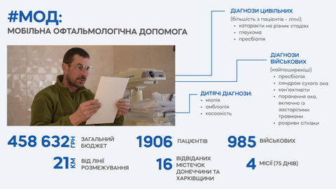 Since 2023, the foundation has launched the #MOC project - free ophthalmological care in front-line territories for locals from these regions. During this time, 2578 patients were thoroughly examined in 18 towns of Donetsk region and Kharkiv region.
